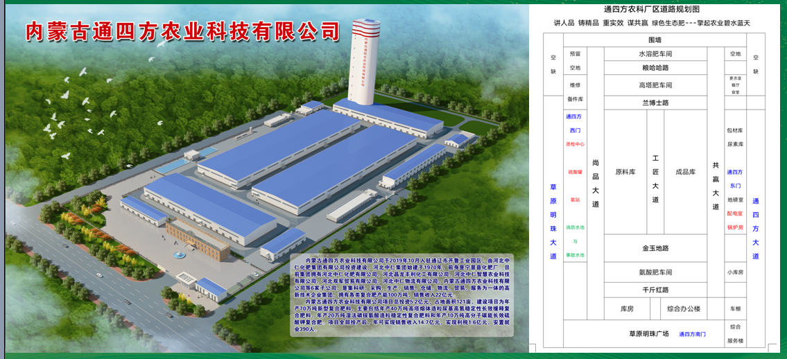 內(nèi)蒙古通四方農(nóng)業(yè)科技有限公司(以下簡稱通四方農(nóng)科)是河北中仁集團(tuán)在通遼市開魯縣投巨資建設(shè)的東四省重點(diǎn)生產(chǎn)基地,是開魯縣2019年度重點(diǎn)招商引資項(xiàng)目,2020年通遼市化肥行業(yè)龍頭企業(yè),內(nèi)蒙古自治區(qū)政府重點(diǎn)扶持涉農(nóng)企業(yè)。